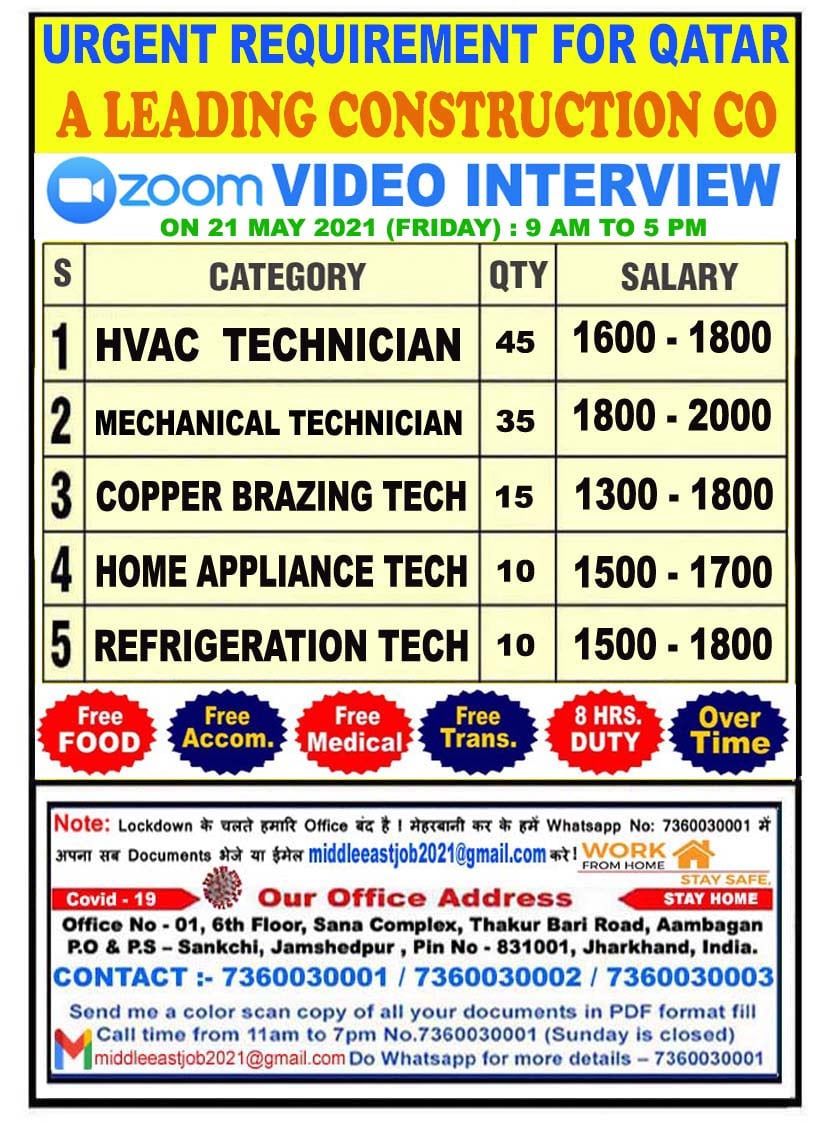 Construction company jobs in qatar 2021 - Urgent requirement