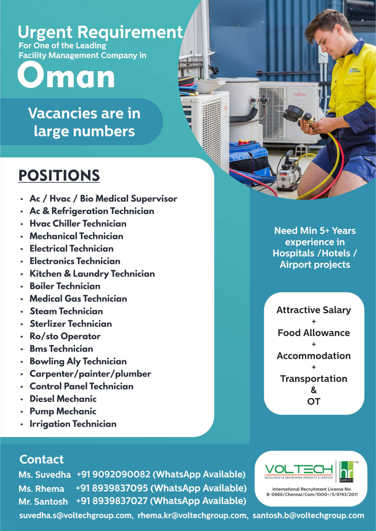 Candidates should have minimum 5+ years of experience in hospitals/hotels/airport projects