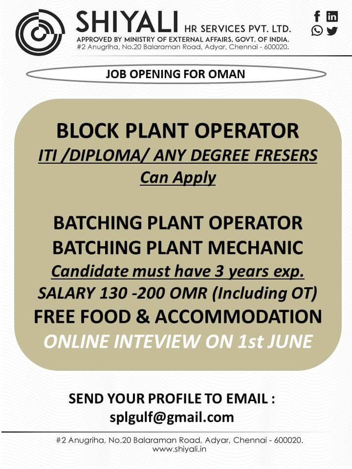 | Batching plant operator | 130 - 200 OMR | |
