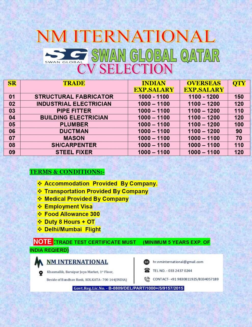 Swan global Qatar jobs - Large requirements
