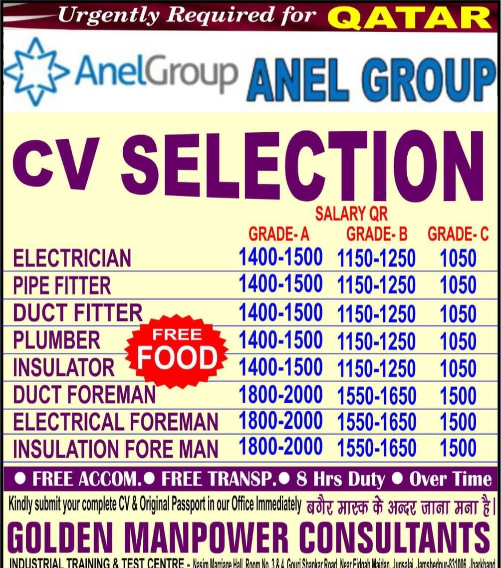 Anel group qatar job vacancy - Urgent requirement