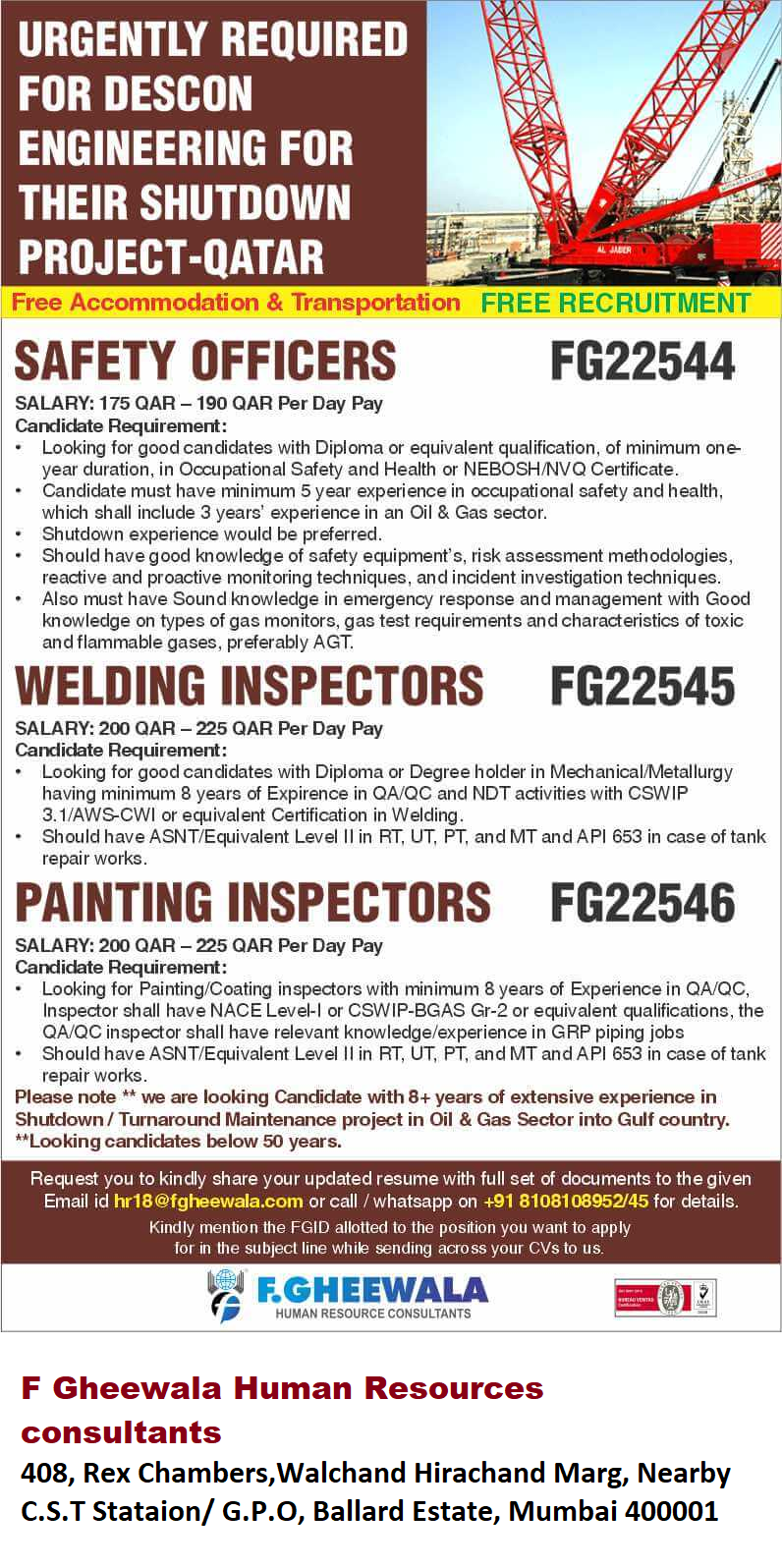 Descon shutdown jobs 2021 - Free recruitment to Qatar