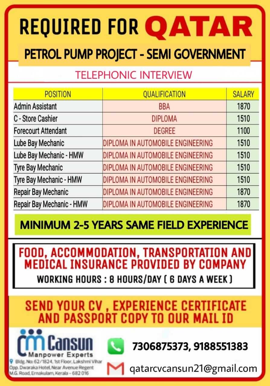 Job in qatar for indian - Petrol pump project