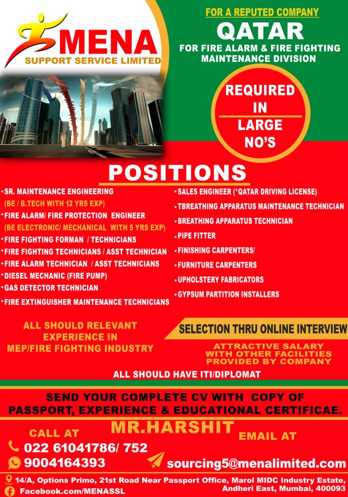 Job in qatar for indian - Fire alaram & fire fighting division