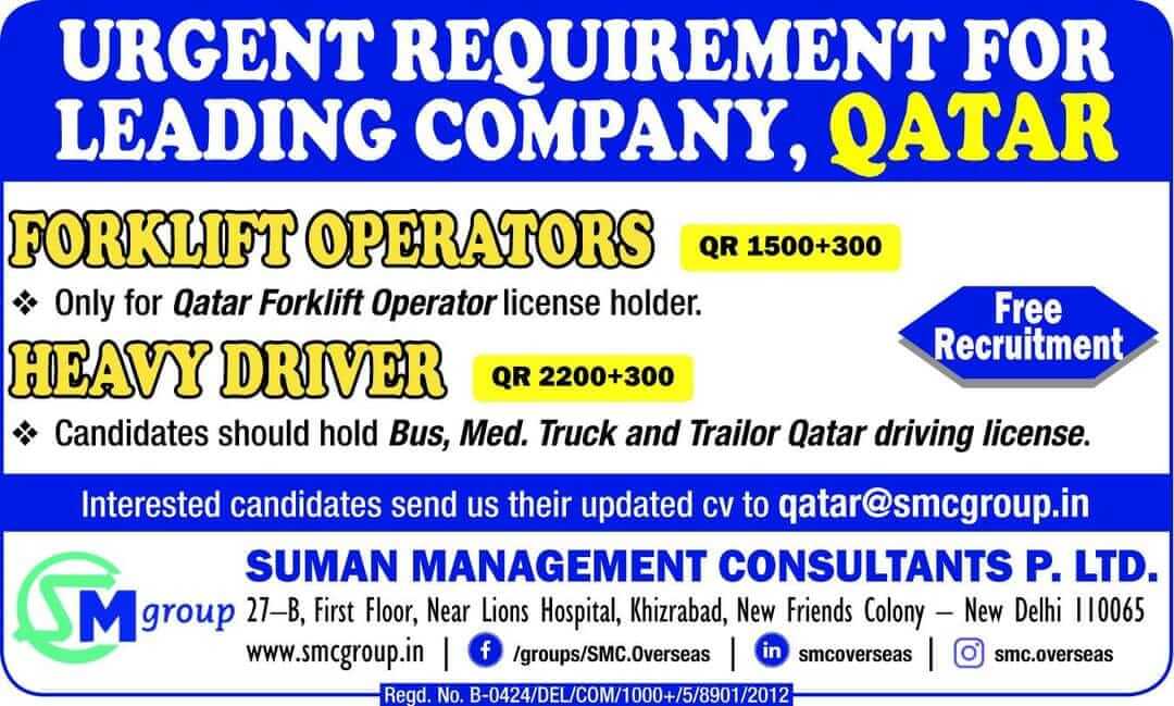 Qatar forklift license and heavy driving license required