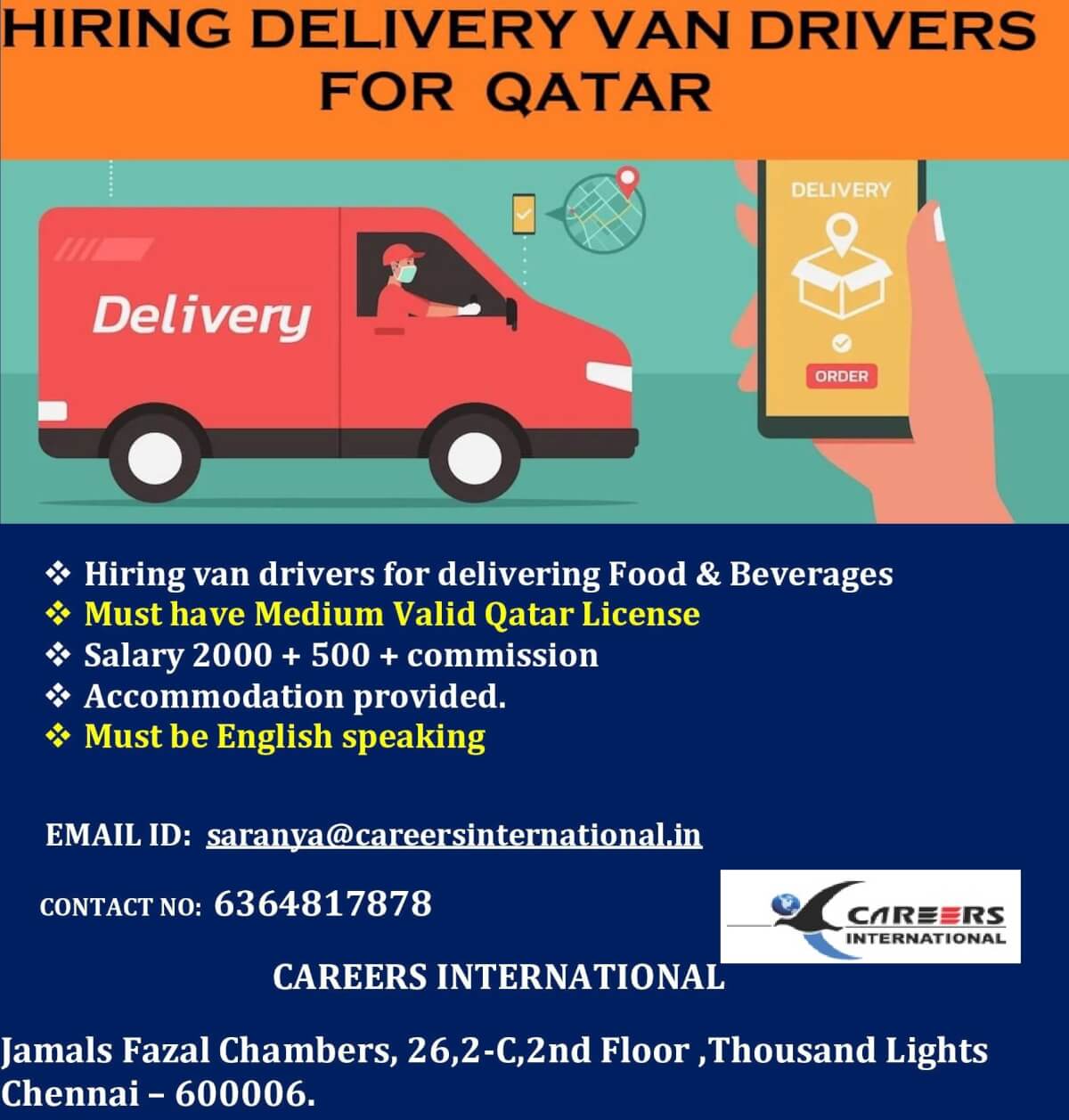 Delivery van driver job in Qatar