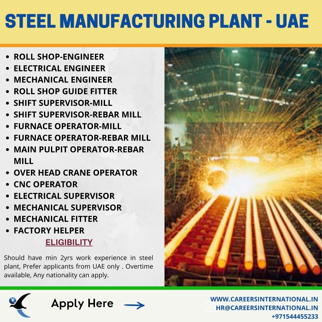 Steel plant vacancy in gulf 2021 - Recruitment to UAE