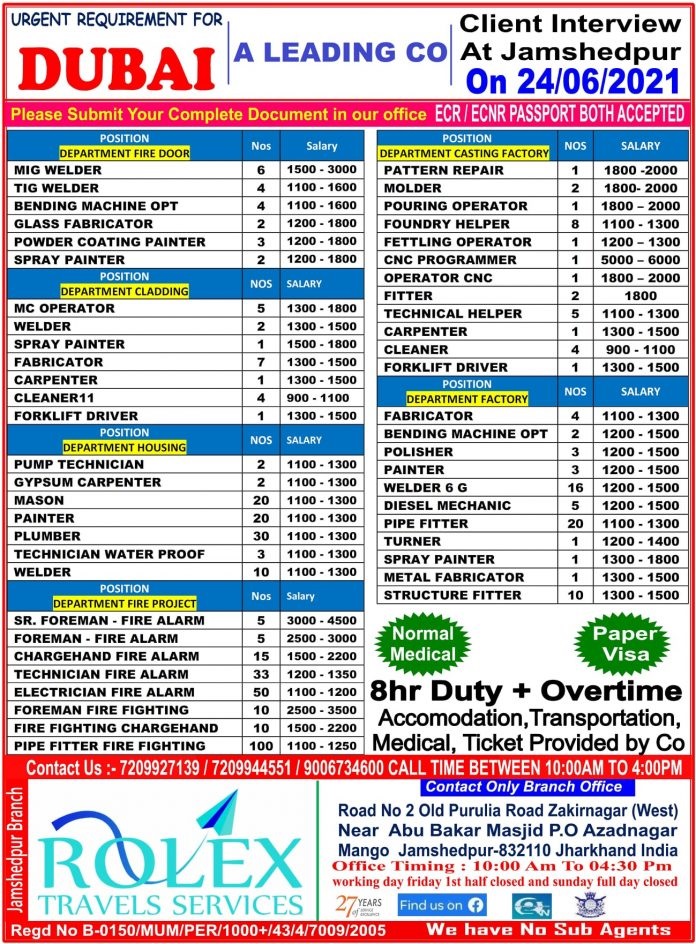 Urgent job vacancies in Dubai for Indian - Large recruitment