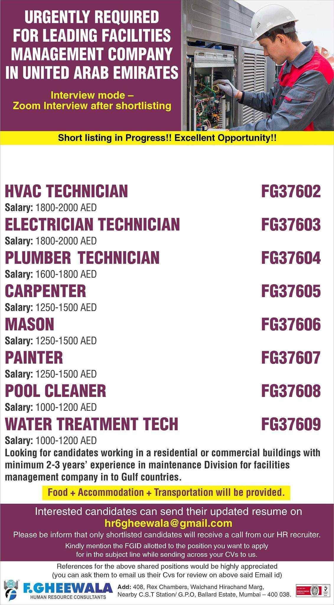 UAE job vacancies for Indian - Facilities management company