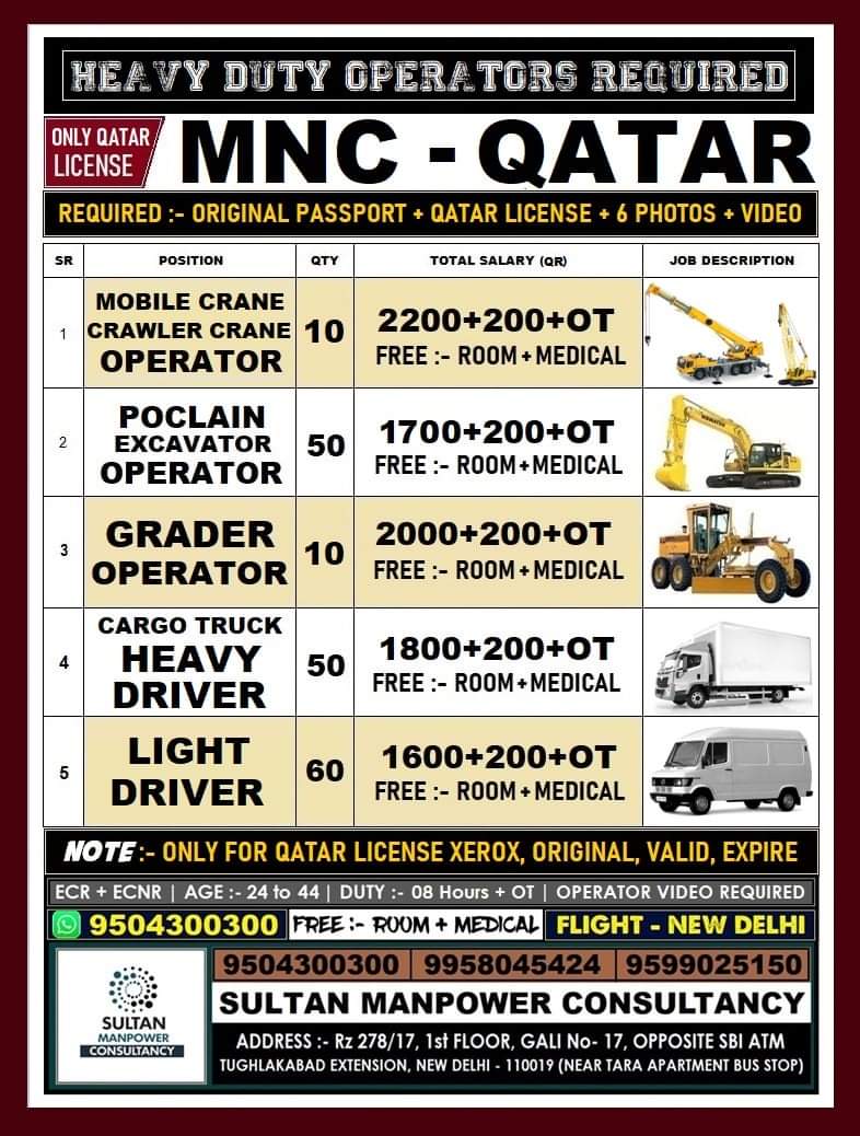 Heavy duty operator jobs in Qatar 2021 - MNC company
