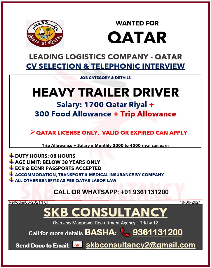 | Heavy trailer driver | 1700 QAR |