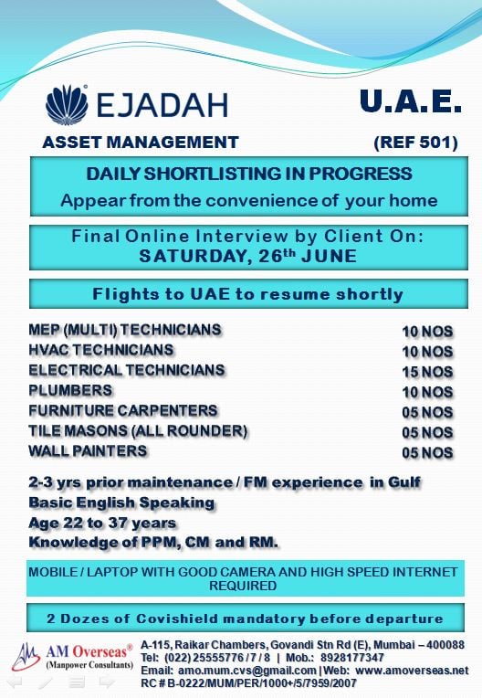 Disclaimer:- GCCWALKINS have no involvement in any recruitment process, This website just sharing job vacancies & interviews from various sources. Applicants are advised to research the bonafides of the prospective employer independently. We do NOT endorse any requests for money payments and strictly advice against sharing personal or bank related information. If you suspect any fraud or malpractice, email us at gccwalkins@gmail.com