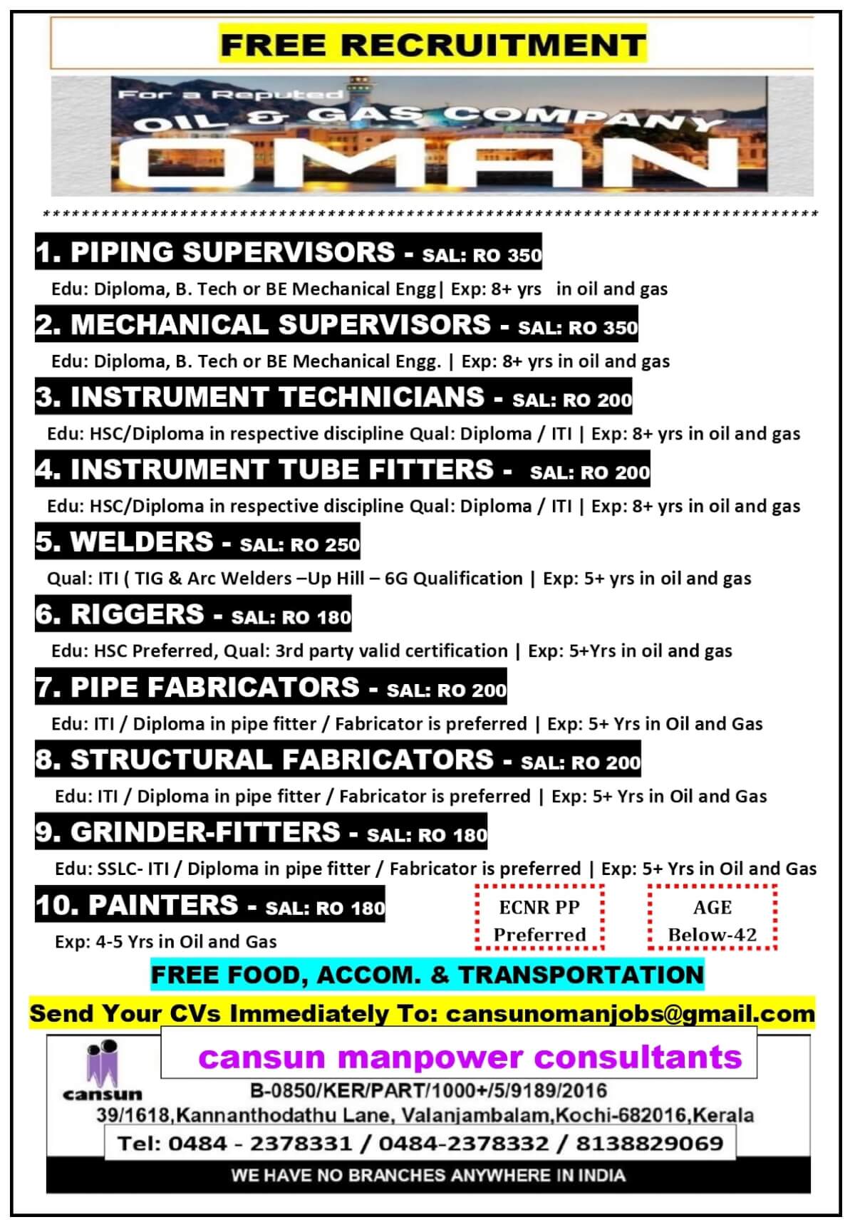 Oil and gas jobs in Oman 2021 - Free recruitment