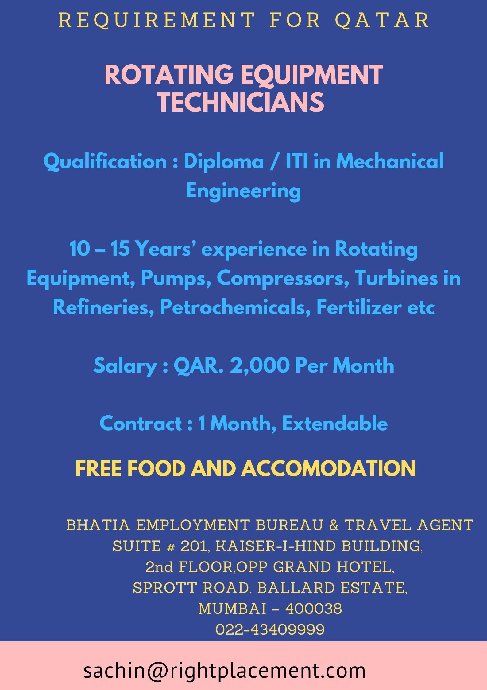 Job Posted By: BHATIA EMPLOYMENT BUREAU & TRAVEL AGENT