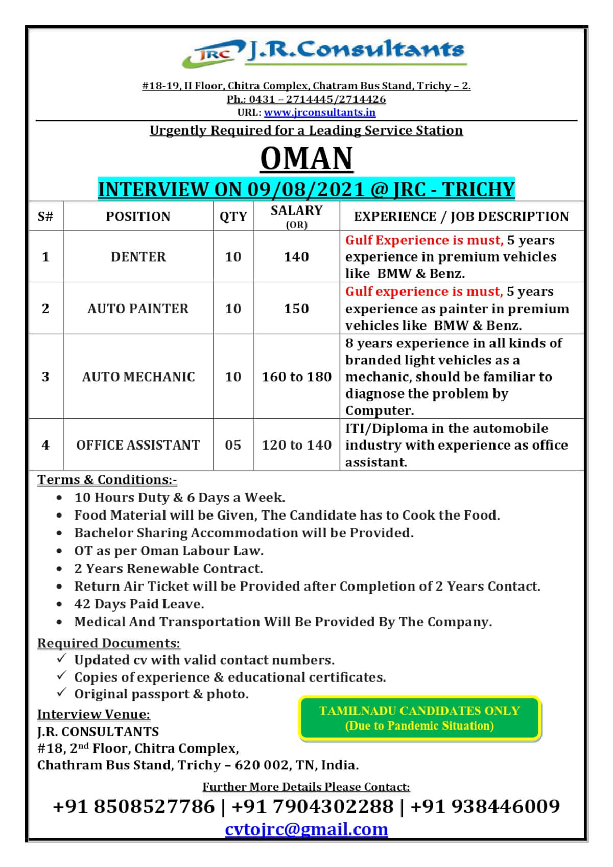 | Auto mechanic | 10 | 160 - 180 OMR |