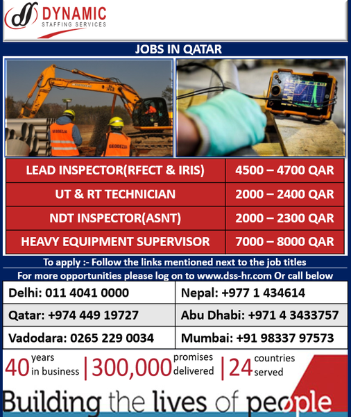 NDT inspector(ASNT) | 2000 - 2300 QAR | |