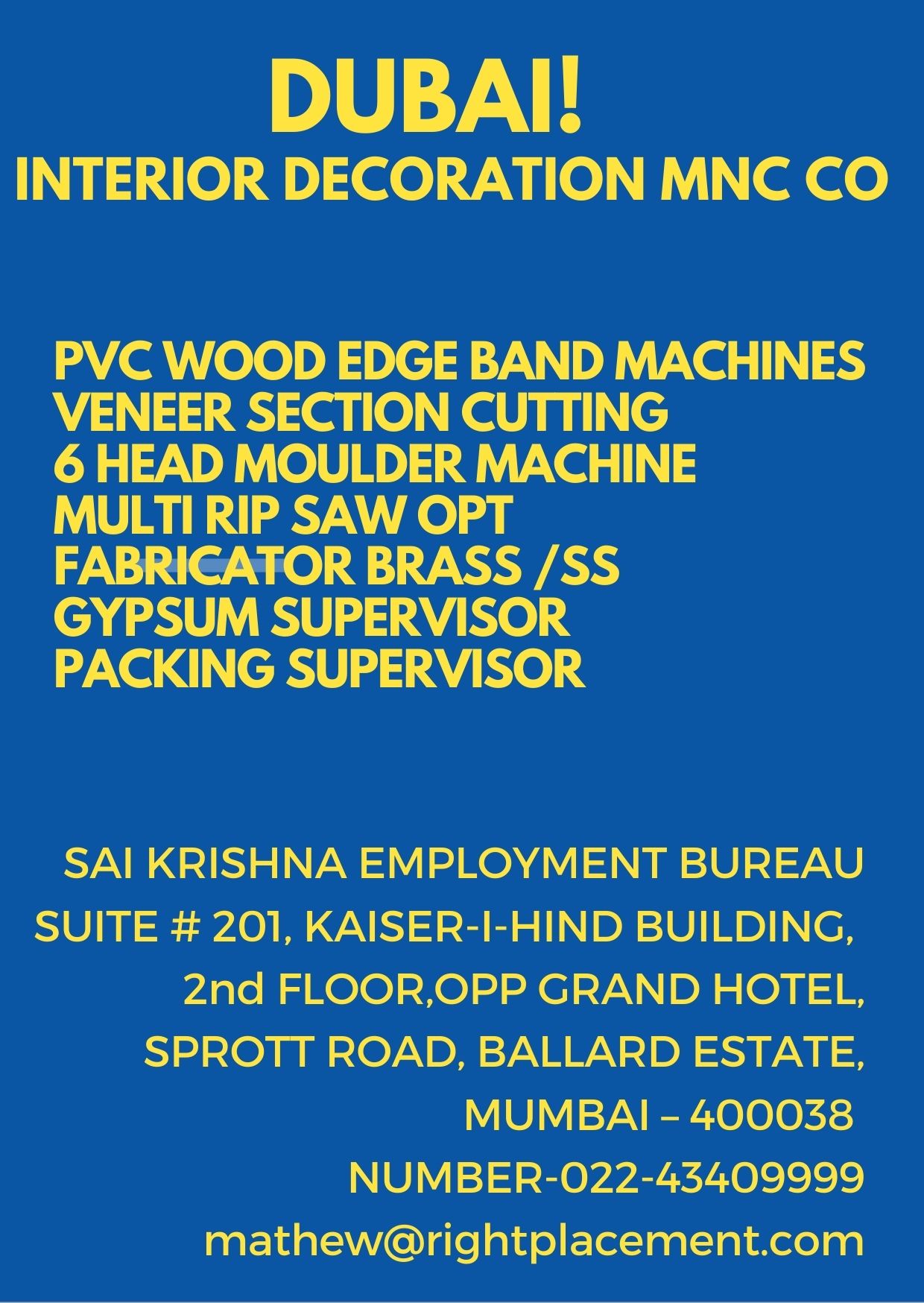 Click on the above 'Apply Button' & send your details to the recruiter, then recruiter will contact you after checking your details.