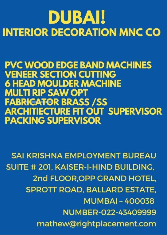 Click on the above 'Apply Button' & send your details to the recruiter, then recruiter will contact you after checking your details.