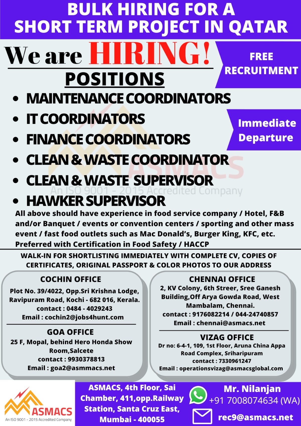 Qatar free recruitment - Short term project