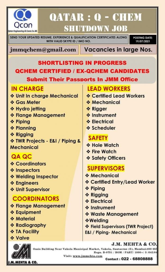 Qcon Qatar shutdown jobs 2021 - Large recruitment