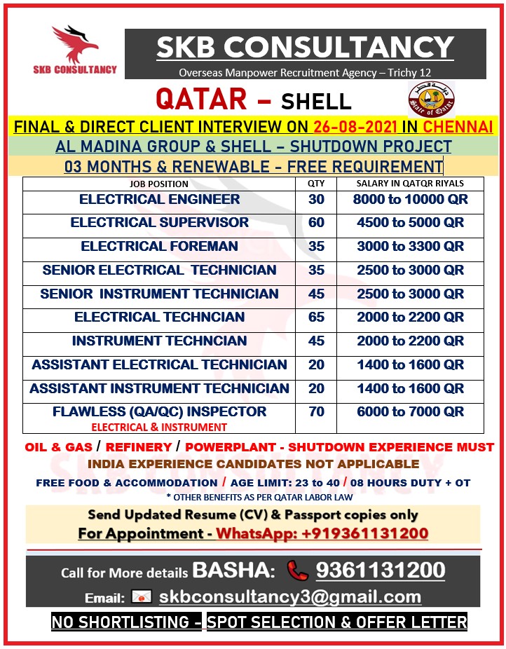 | Flawless (QA / QC) inspector (Electrical & Instrument) | 70 | 6000 - 7000 QAR |
