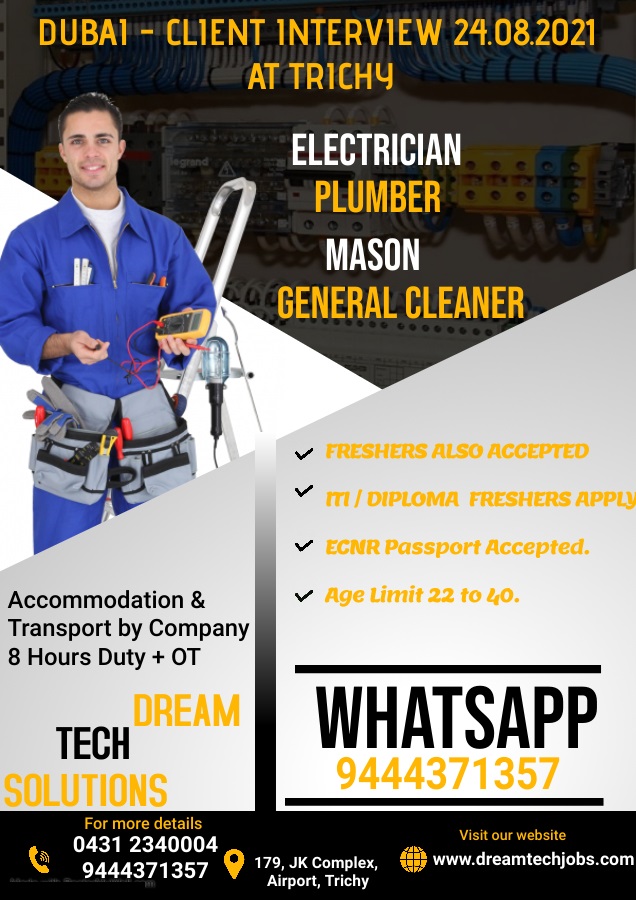 Click on the above 'Apply Button' & send your details to the recruiter, then recruiter will contact you after checking your details.