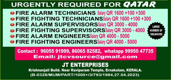 Fire alarm fire fighting jobs Qatar 2021 - Urgent required