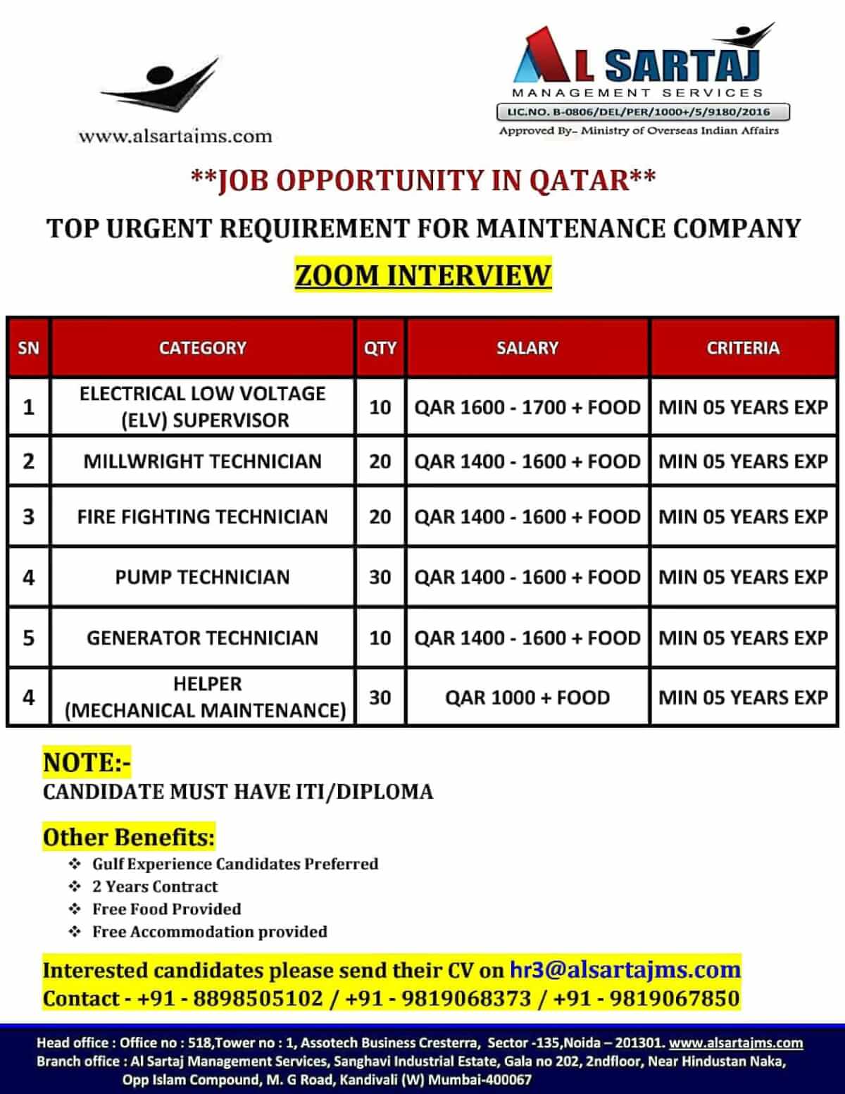 Jobs in Qatar for Indian - Maintenance company