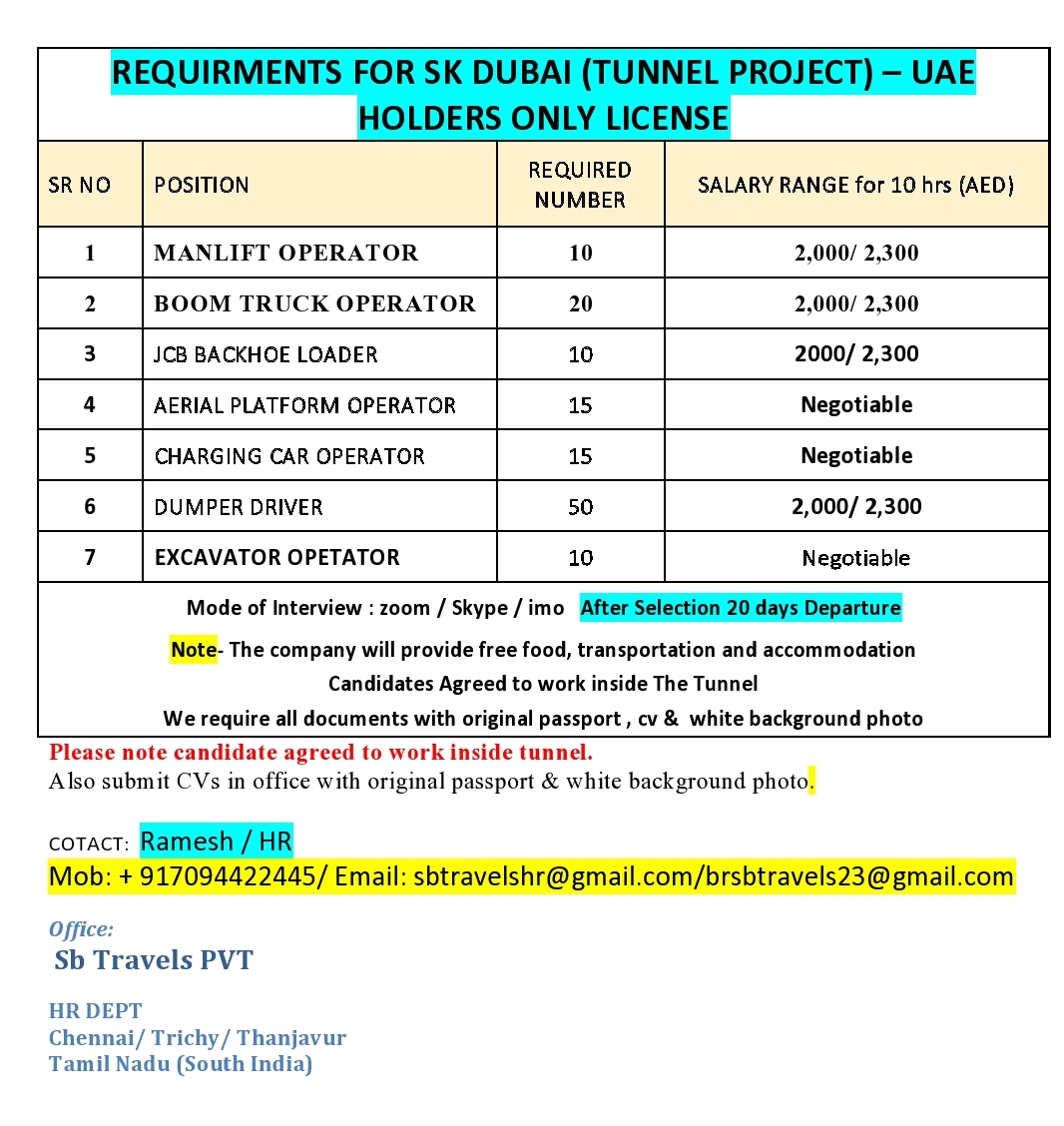 | Dumper driver | 50 | 2000 - 2300 AED |