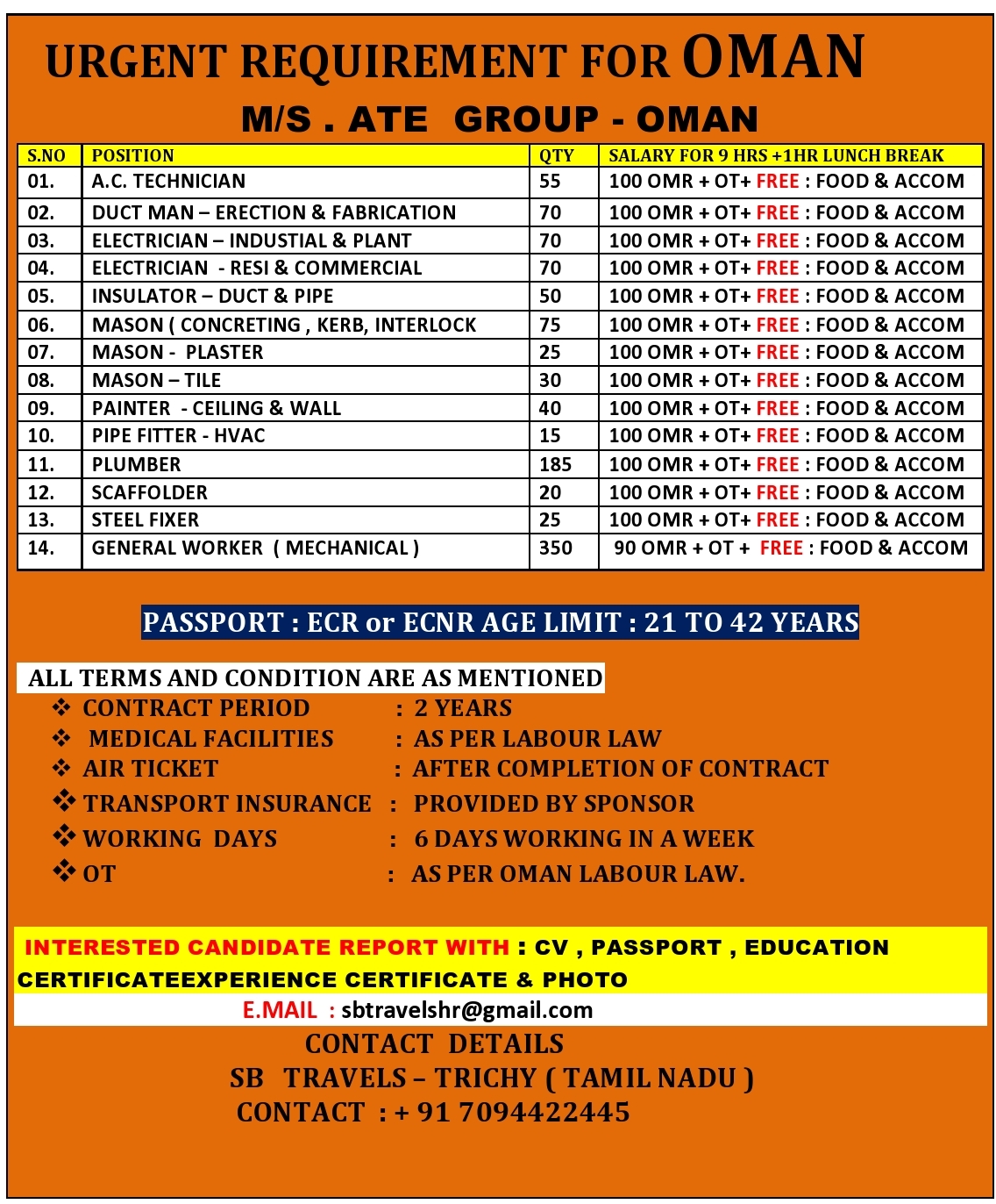 | Duct man - erection & fabrication | 70 | 100 OMR |