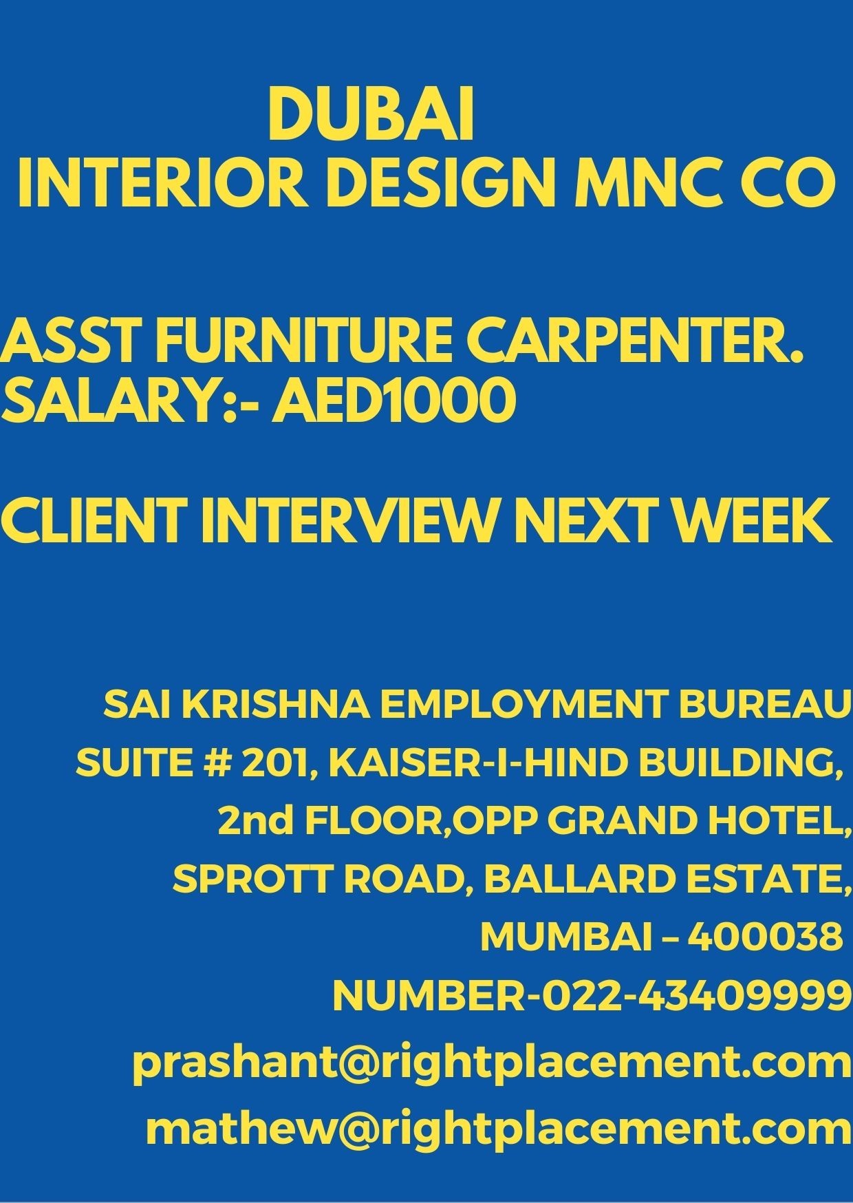 | Assistant furniture carpenter | 1000 AED |