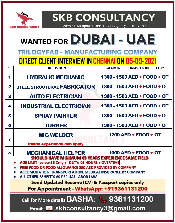 | Hydraulic mechanic | 1300 - 1500 AED | |