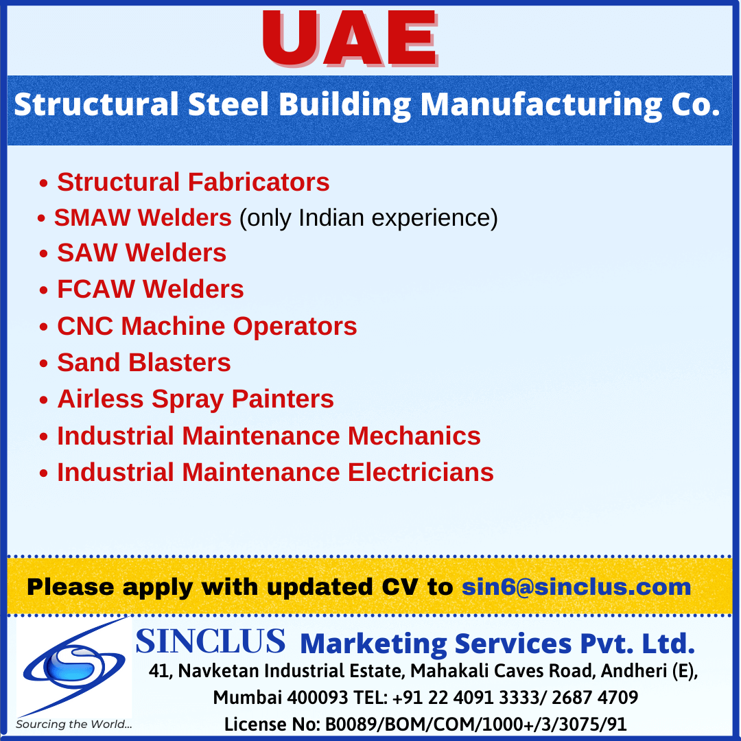 Jobs in UAE for Indian - Structural steel building manufacturing company