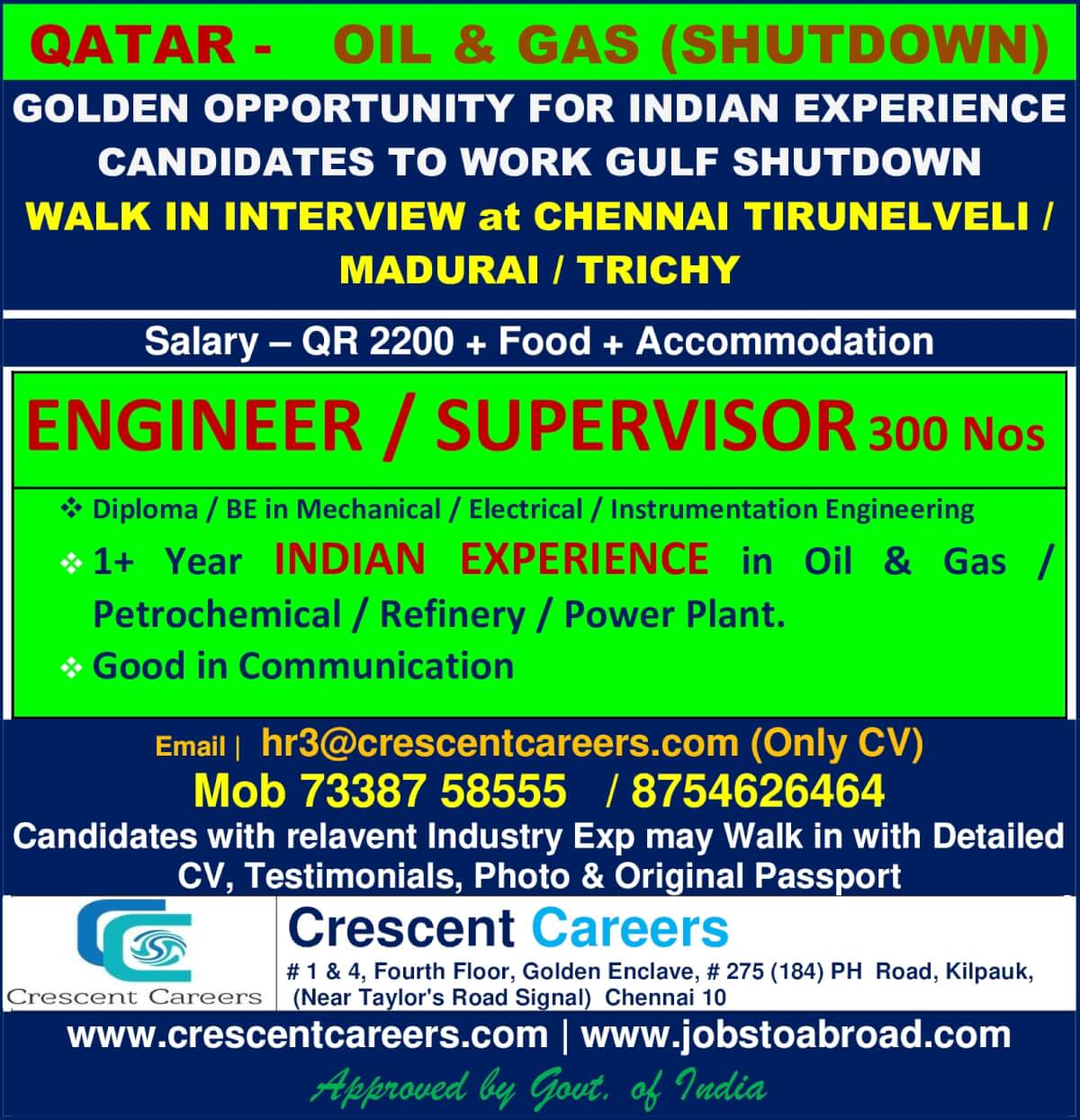 Disclaimer:- GCCWALKINS have no involvement in any recruitment process, This website just sharing job vacancies & interviews from various sources. Applicants are advised to research the bonafides of the prospective employer independently. We do NOT endorse any requests for money payments and strictly advice against sharing personal or bank related information. If you suspect any fraud or malpractice, email us at gccwalkins@gmail.com