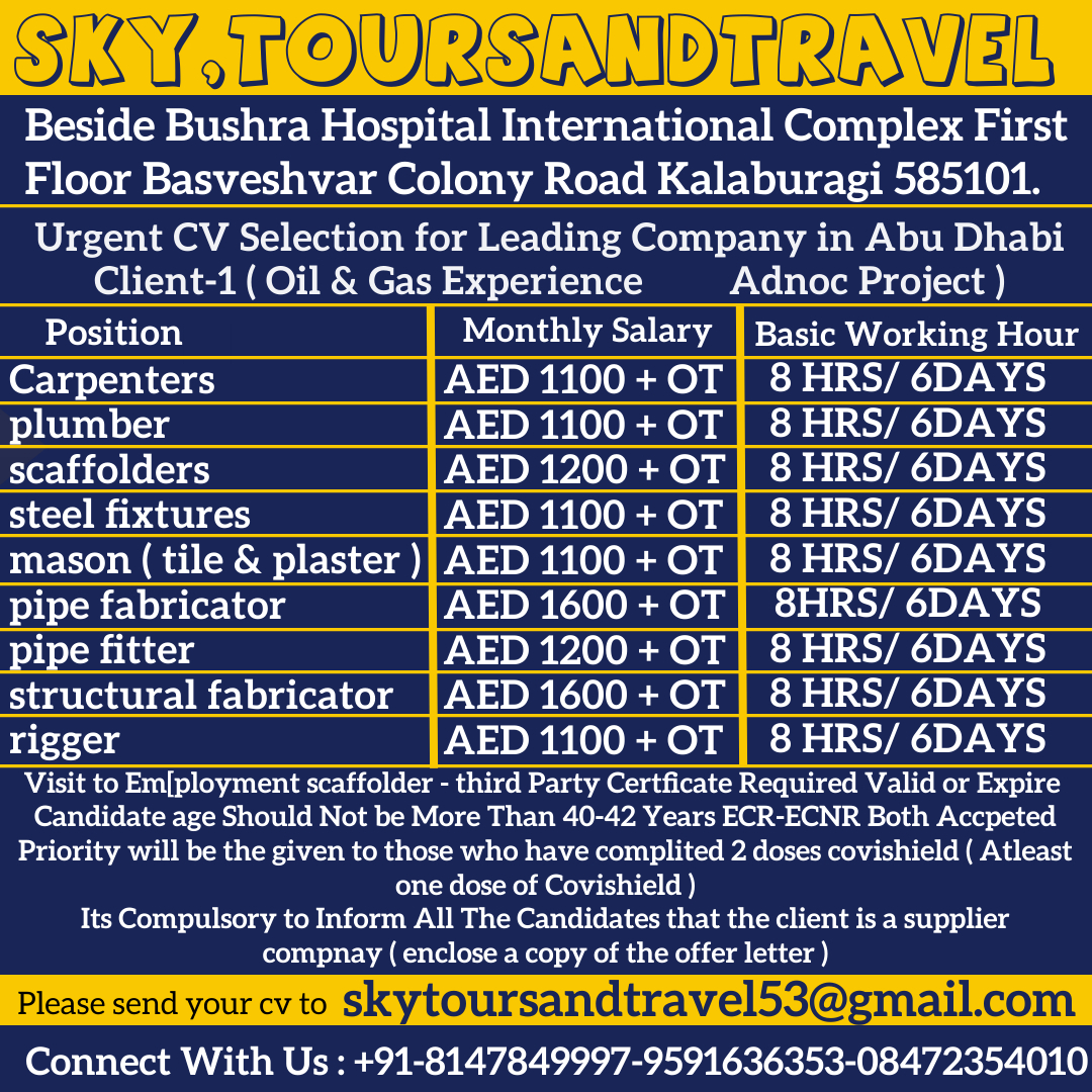 Disclaimer:- GCCWALKINS have no involvement in any recruitment process, This website just sharing job vacancies & interviews from various sources. Applicants are advised to research the bonafides of the prospective employer independently. We do NOT endorse any requests for money payments and strictly advice against sharing personal or bank related information. If you suspect any fraud or malpractice, email us at gccwalkins@gmail.com