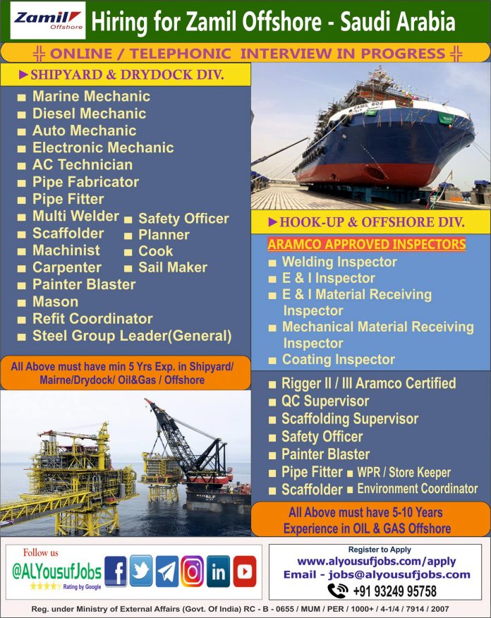 Zamil offshore job vacancy in Saudi Arabia - Large recruitment
