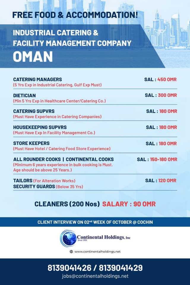 Jobs in Oman for Indian - Industrial catering & facility management company