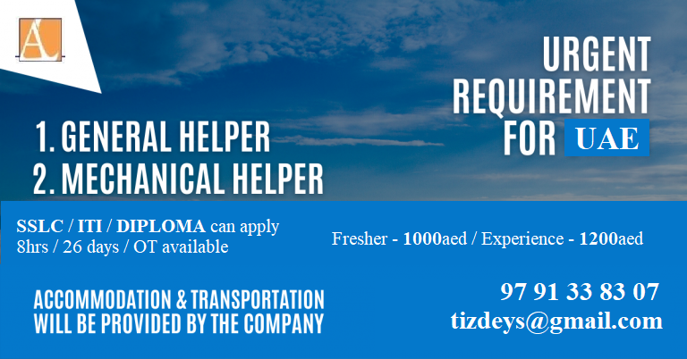| Mechanical helper | 1000 - 1200 AED |