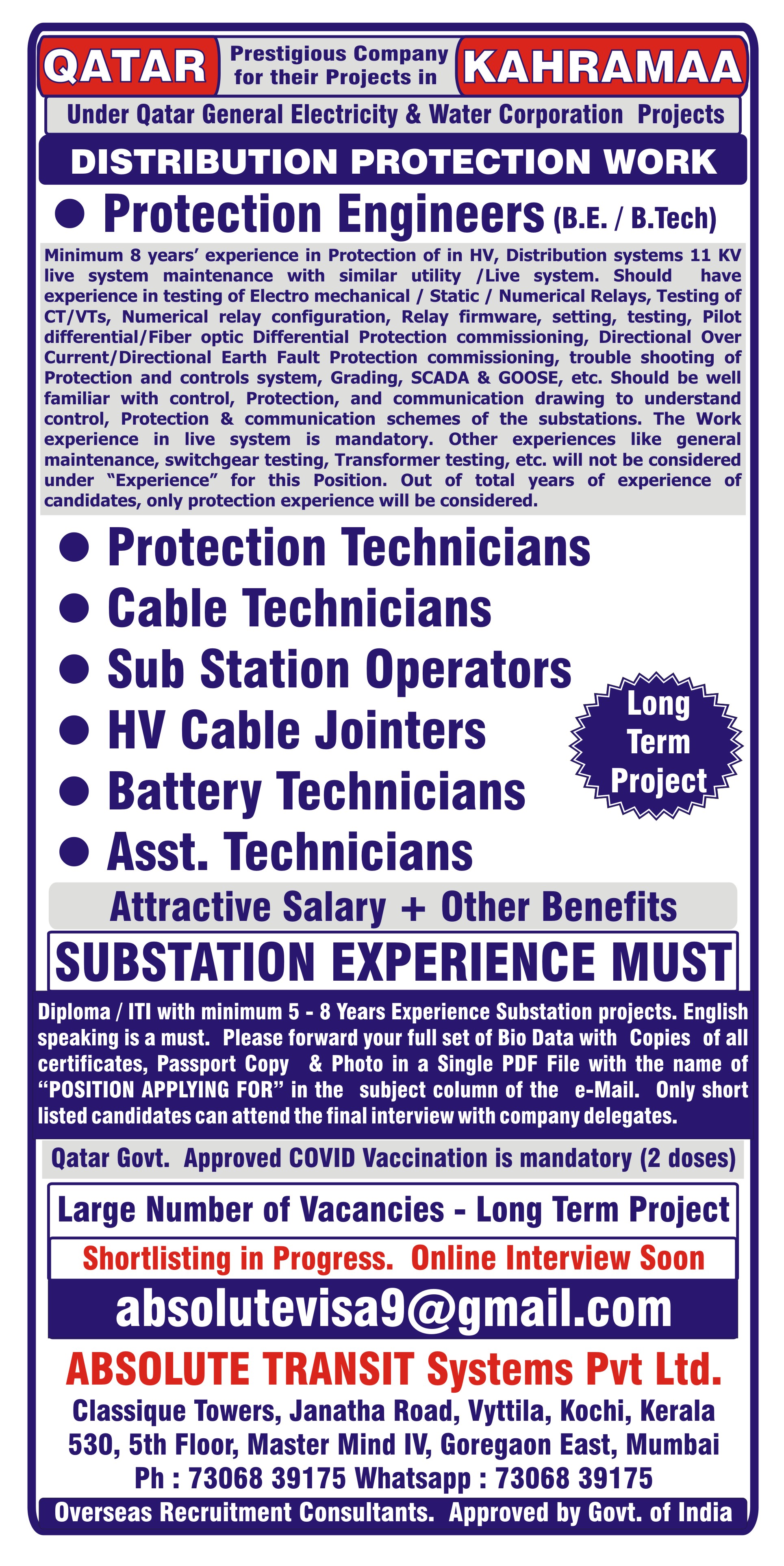 Kahramaa qatar job vacancies 2021 - Distribution protection work