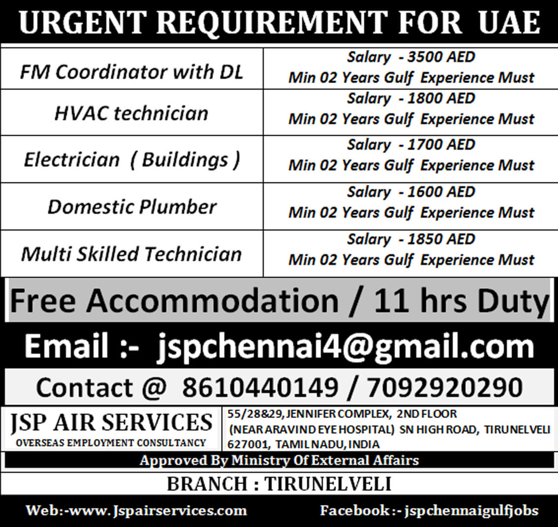 Urgent job vacancies in UAE