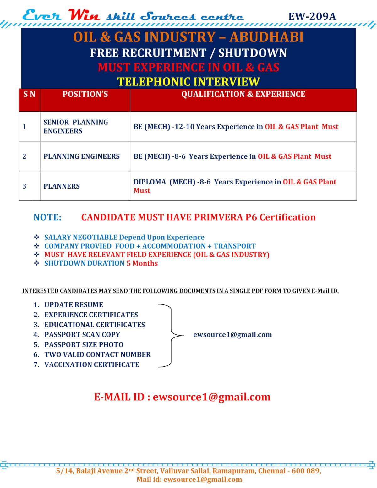 Send your updated cv and supporting documents for shortlisting