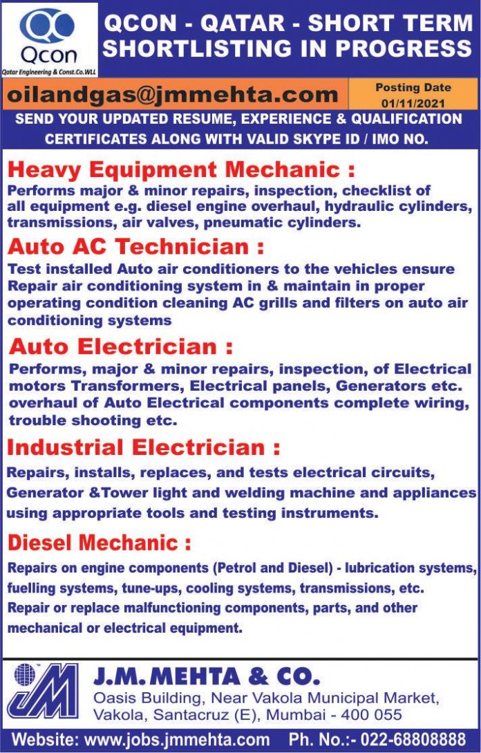 Qcon qatar job vacancies 2021 - Urgent requirement