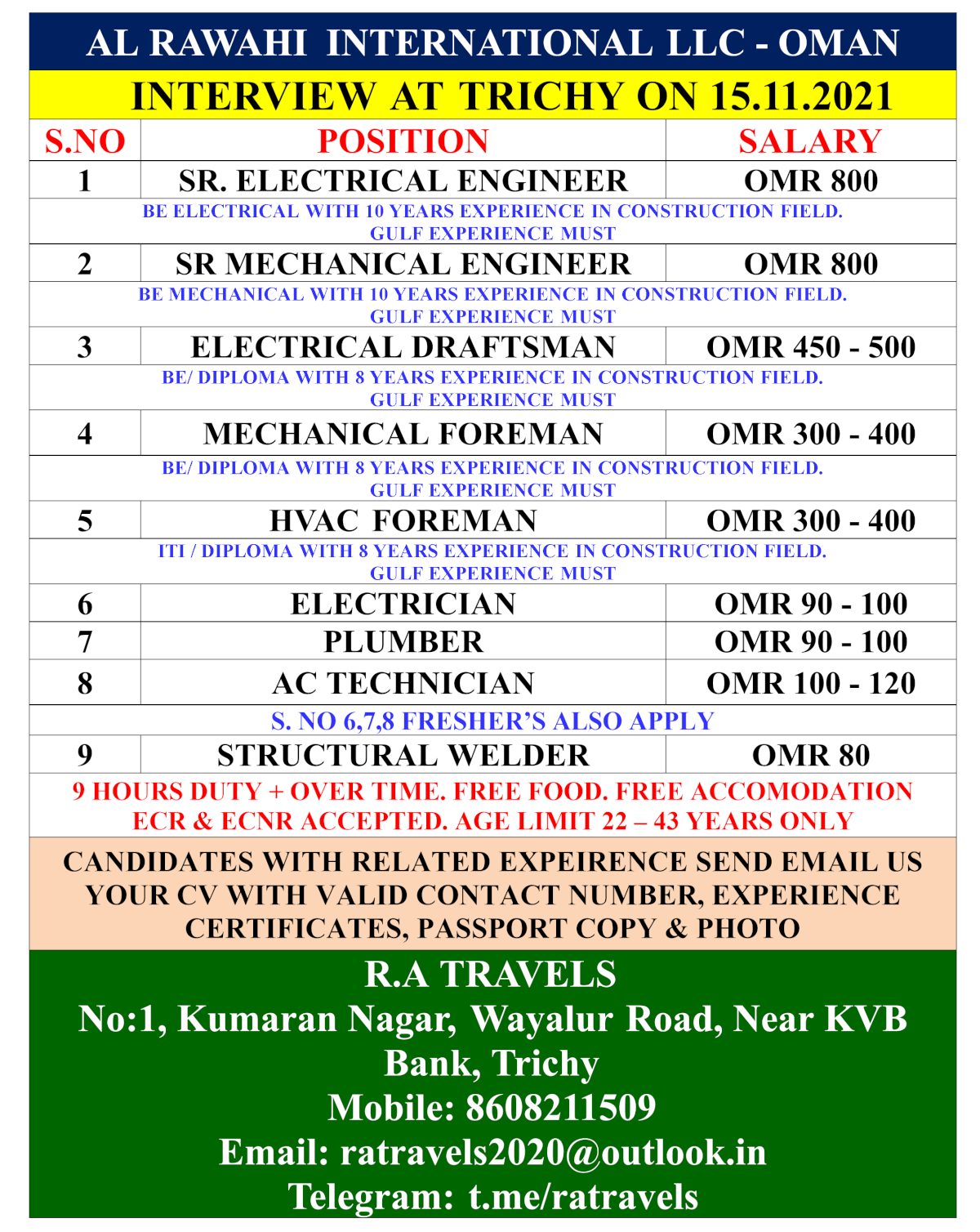 Disclaimer:- GCCWALKINS have no involvement in any recruitment process, This website just sharing job vacancies & interviews from various sources. Applicants are advised to research the bonafides of the prospective employer independently. We do NOT endorse any requests for money payments and strictly advice against sharing personal or bank related information. If you suspect any fraud or malpractice, email us at gccwalkins@gmail.com