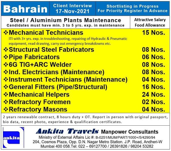 Steel plant jobs in Bahrain - Maintenance project