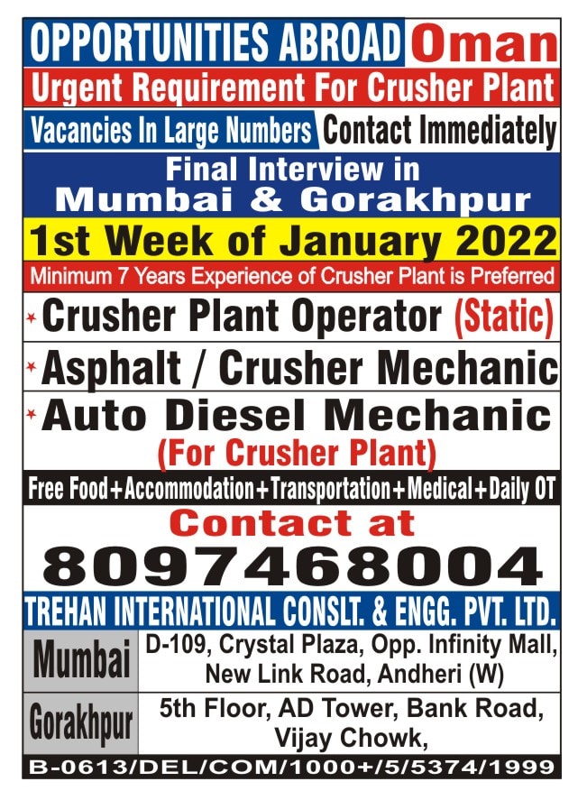 Urgent requirement for crusher plant in Oman