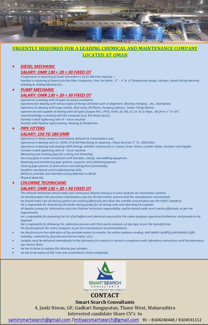 Wanted for Oman - Chemical & maintenance company
