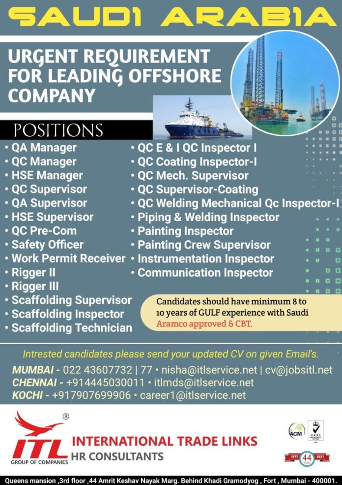 Offshore jobs in Saudi Arabia - Urgent requirement