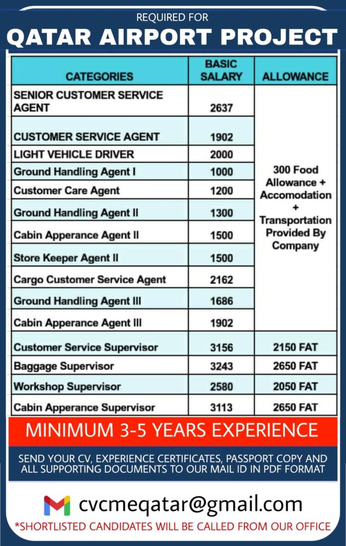 Qatar airport job vacancy 2022 - Urgently required