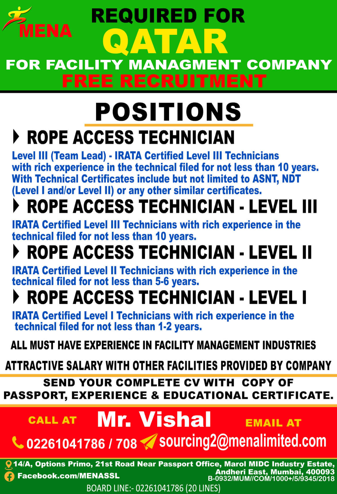 Rope access jobs in Qatar - Free recruitment