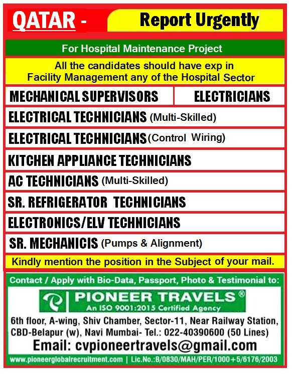 Job in Qatar for Indian - Hospital maintenance project